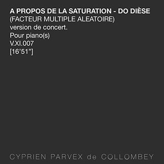 Il est apparu une chose bien singulière lors d’une audition que je donnais à François Bazzoli de mon “A propos de la saturation - Do dièse (FACTEUR MULTIPLE ALÉATOIRE) version de concert.” [16’51”], pendant tout son développement et jusqu’au CLIMAX de la pièce, le vent nous parvenait de l’extérieur et venait enrichir, s’additionner à la pauvreté événementielle de la pièce, ainsi superposé au souffle de l’enregistrement. Le parcours sonore semblait tout à coup plus riche, plus spacieux et surtout moins prévisible. Peut-être que cette pièce ne devrait être jouée que par jour de grand vent pour enrichir son sens et son propos.