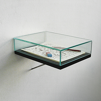 Cloche de verre, bois laqué, métal, partition, crayon mine HB,