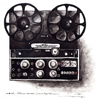 Sur scène, au minimum cinq paires de hauts-parleurs amplifiés de différents types, une table de mixage, un enregistreur à bande magnétique et mon ordinateur...