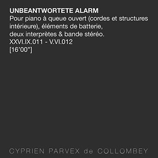 Cyprien Parvex de Collombey est un artiste Franco-Suisse né en 1982, diplômé de l’École Supérieure des Beaux Arts de Marseille et du Conservatoire National de Région Pierre Barbizet. Ses champs de recherche s’axent sur l’étude de documents et d’archives musicales, et la mise en espace de concepts littéraires et poétiques protéiformes. Au travers de formes visuelles et sonores, ses réalisations questionnent constamment le son, la musique, ainsi que les protocoles d'écriture et d’écoute.